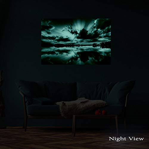 Nature artworks outline a romantic personality; Especially, this Multicolor Sky Light glass wall art it’s a trend setter in its category with a powerful message; YOU will also discover the Dual View feature of the painting; It gently glows in the dark for up to 8 hours